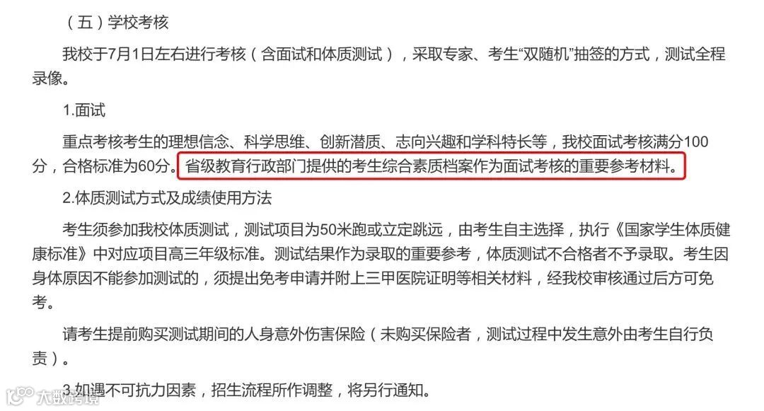 作为高校招生录取的重要参考。高等学校根据学校办学特色和人才培养要求,制定科学规范的高中学生综合素质评价使用办法,并提前向社会公布,评价结果作为招生录取的重要参考。在考生分数相同时,可作为优先录取和优先安排专业的依据。