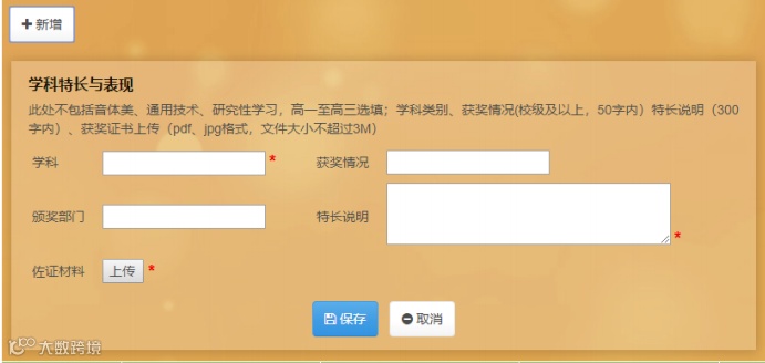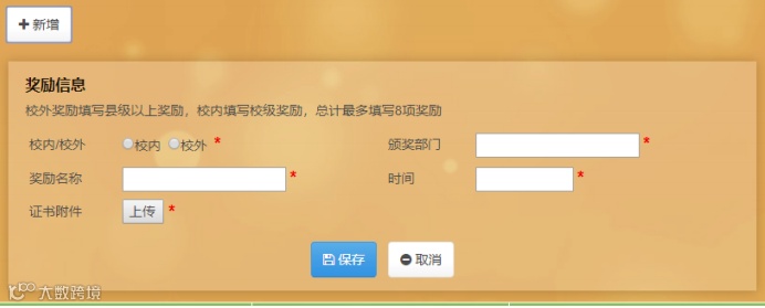 校外奖励信息:按照实际填写