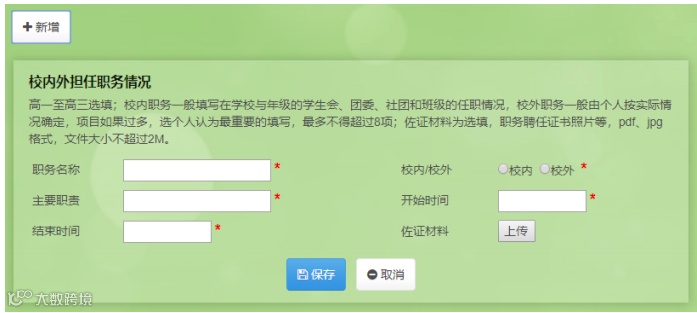 校内担任职务:班长、团支部书记、社团社长、学习/文艺/体育委员等