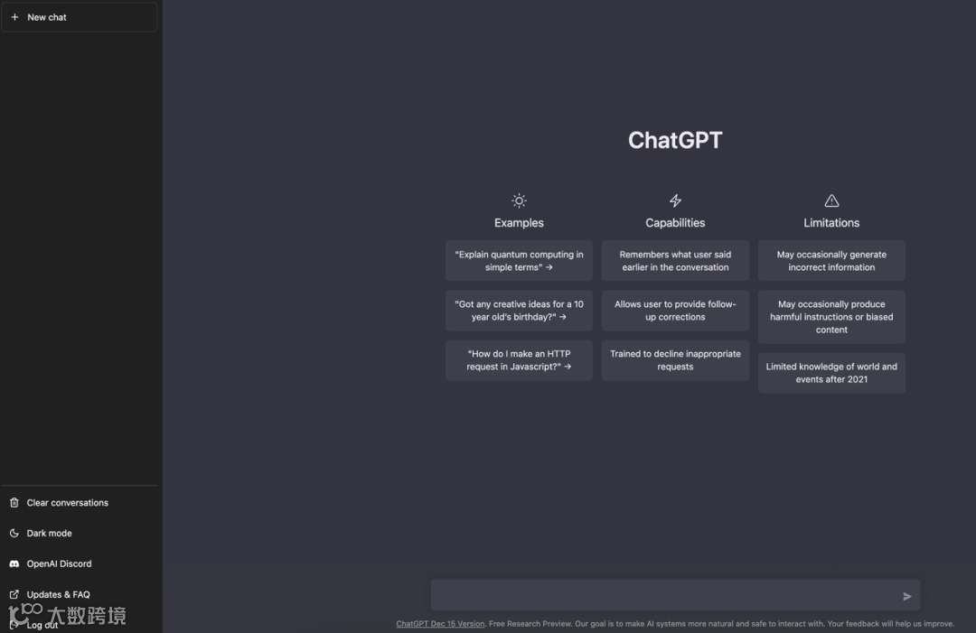 图丨早期的 ChatGPT 界面(来源:OpenAI)
