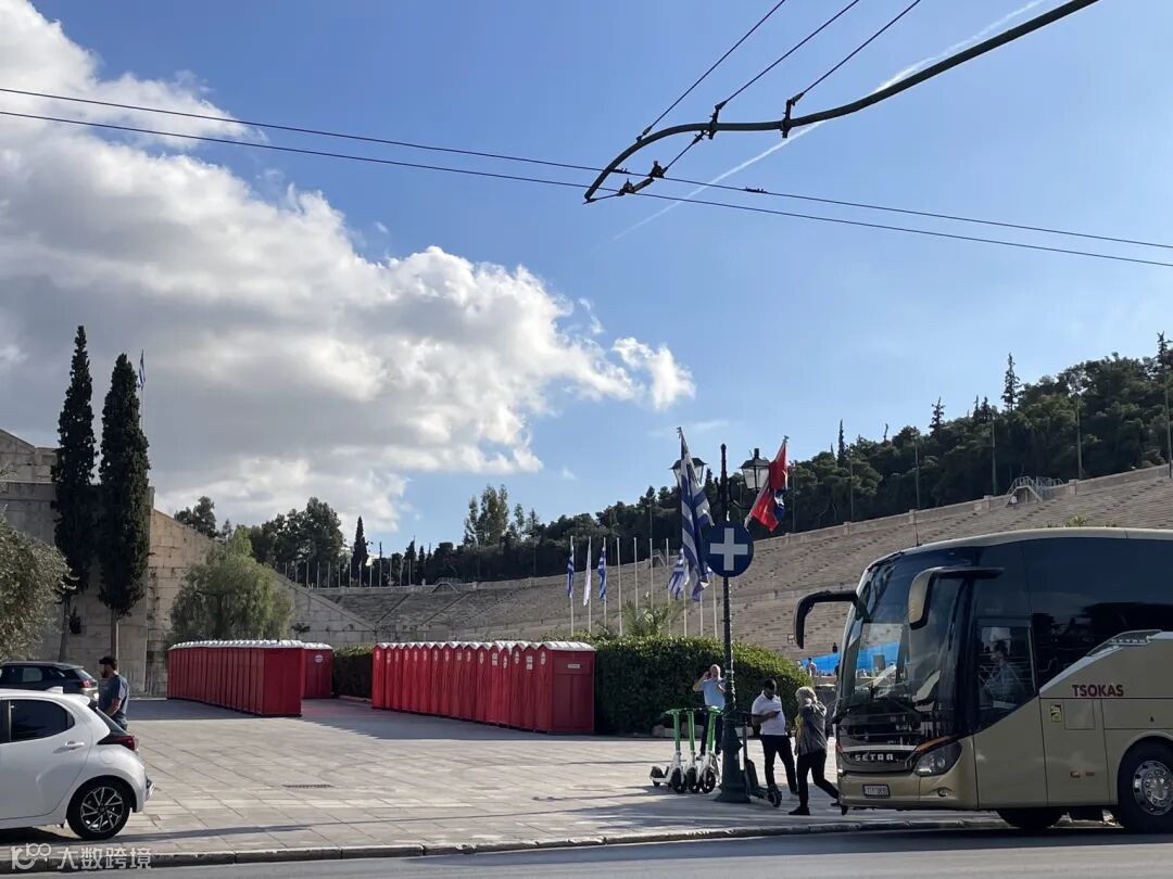 老A讲跨境本周末42届正宗雅典马拉松即将开赛。周六下午17:00第一项赛事5km公路赛将正式开跑。周五下午开车出门溜达,3点左右路过泛雅典体育场,发现部分设施和材料已经到位。