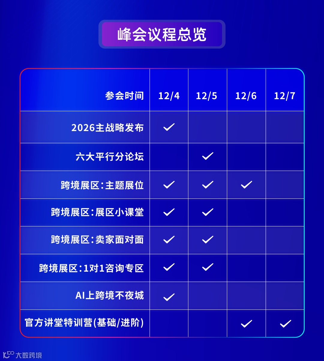 同时,为了让大家更好地规划行程,大家可以参考以下峰会总览,提前规划。12月4日-6日,堡森三通全程在D馆S-D22展位恭候莅临,期待与您面对面交流,探讨下一阶段的跨境增长机会。
