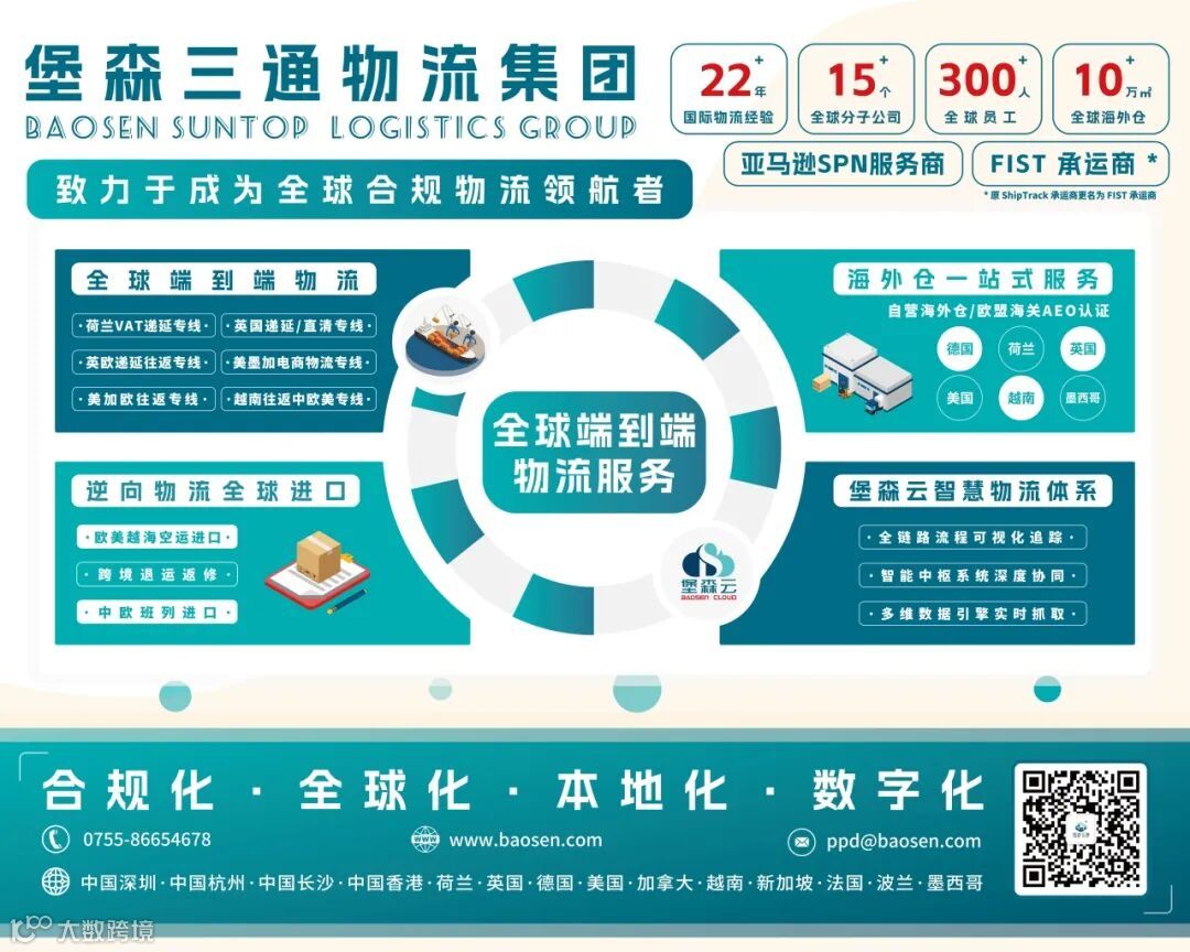 除此之外,峰会期间,堡森三通资深团队将全天在展位提供1V1跨境物流答疑服务,无论是处于新手阶段还是已在多站点深耕的卖家,都可在展位获得专业合规、可落地的解决方案。