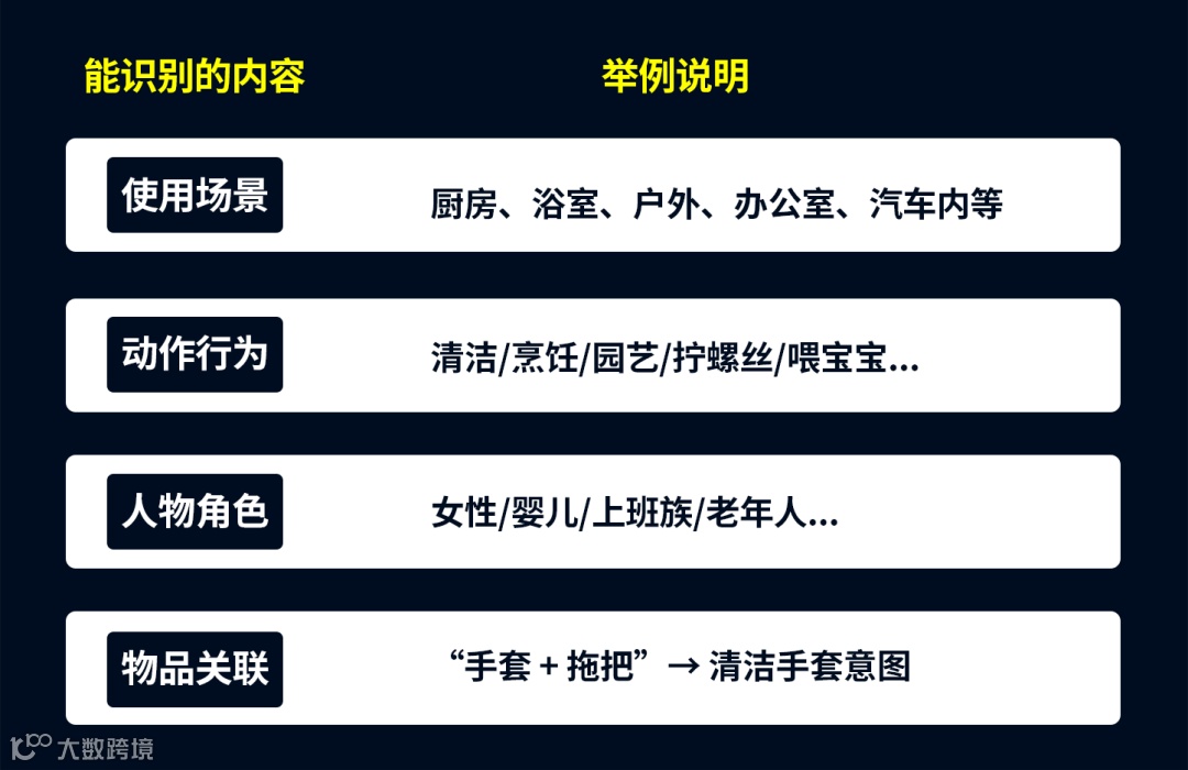 算法可识别图片中的具体元素,包括使用场景、目标人群、动作行为、材质细节及环境背景,并将这些视觉信息转化为关键词权重。