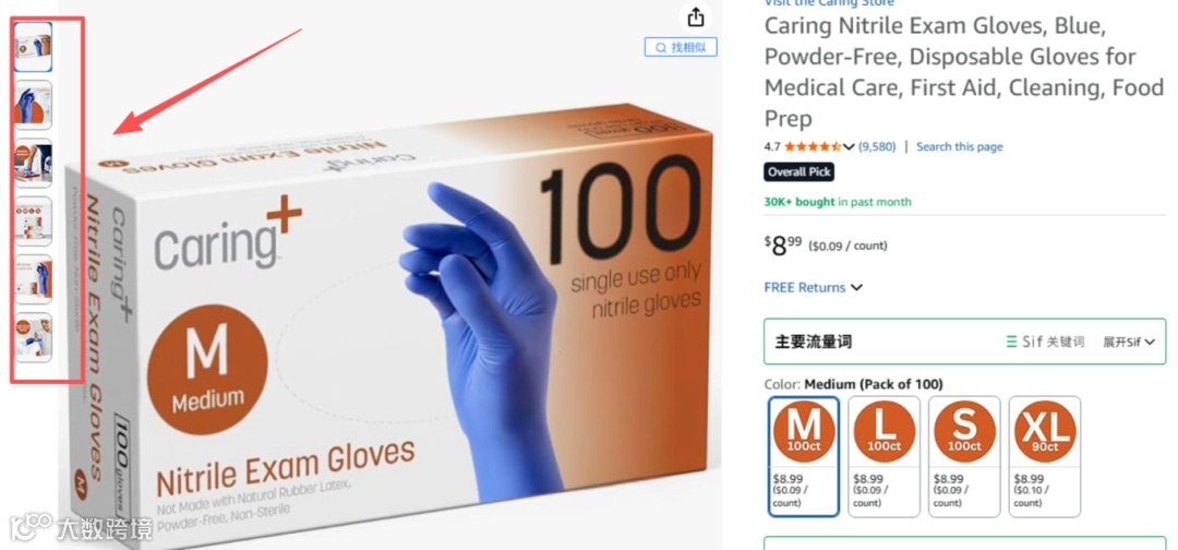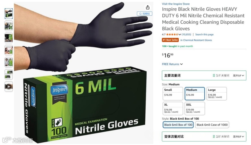 如上图所示,第二张为清洁场景,第三张为烹饪场景,有助于在“cleaning gloves”和“food gloves”等关键词获得更好排名表现。