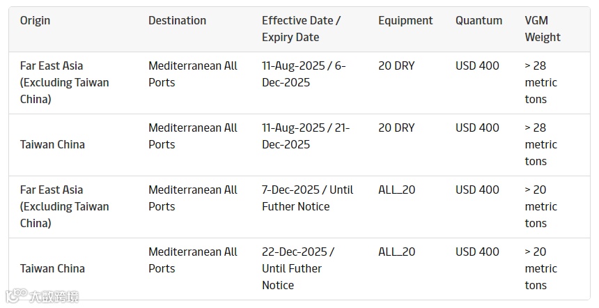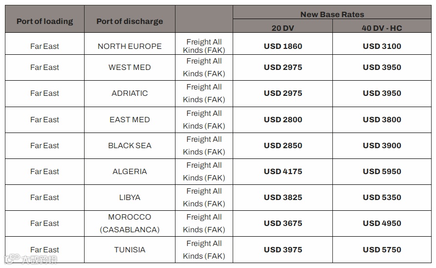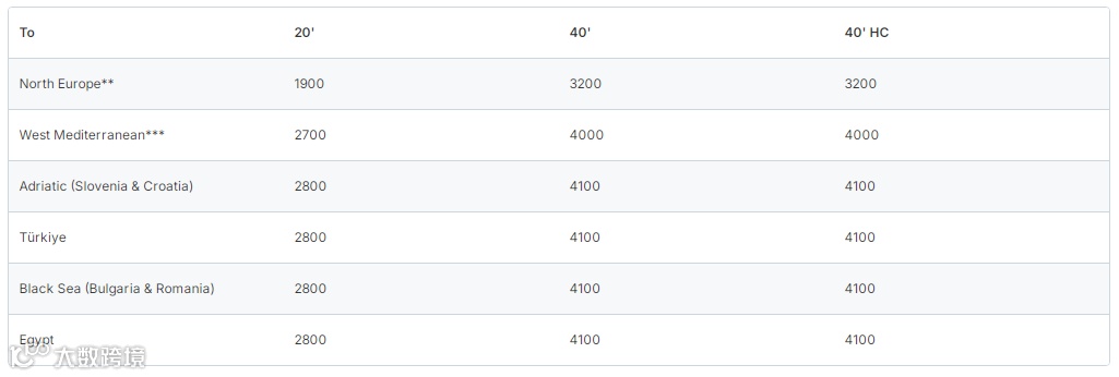 MSC宣布自2025年12月1日起,调整远东至北欧、地中海及黑海地区运费。具体费率如下: