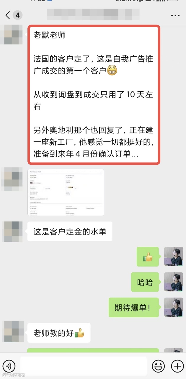 通过系统陪跑,他们逐步掌握从关键词筛选到广告优化的完整链路,多人在投放后迅速获得询盘并成交订单。