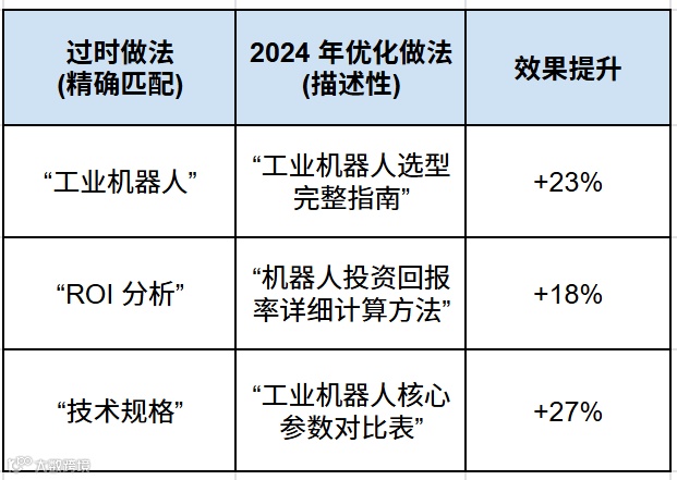 放弃短关键词,采用 4-6 个词的描述性短语,显著提升效果。