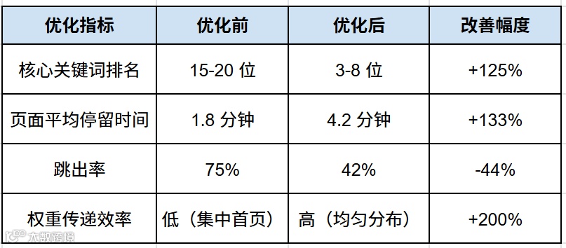 - 权重畸形:80% 内链指向首页,深层页面缺乏权重支持。
