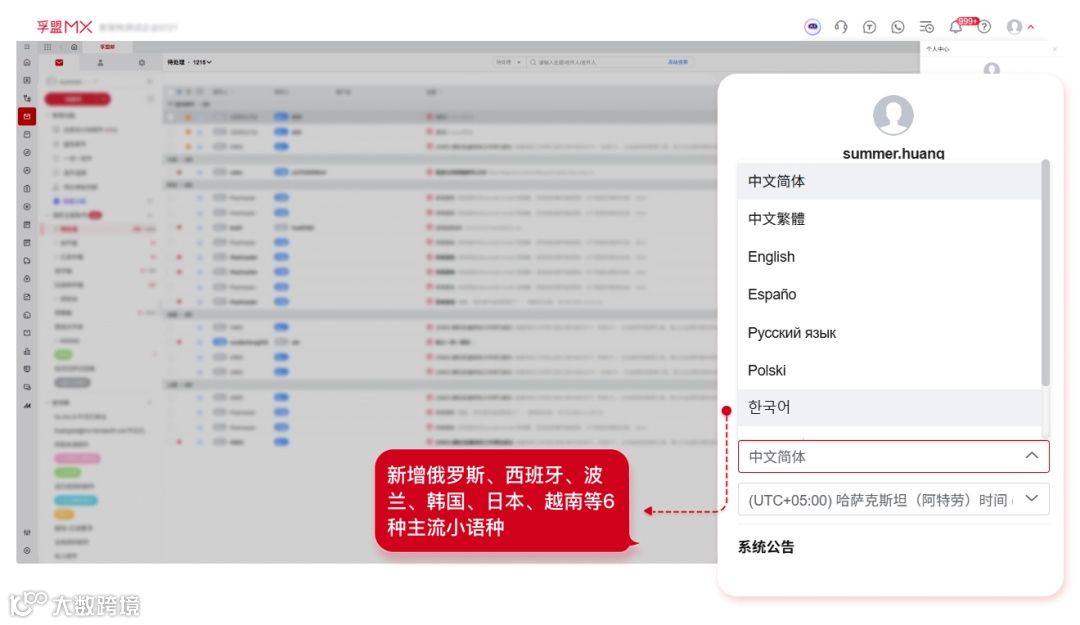孚盟CRM新增俄语、西班牙语、波兰语、韩语、日语、越南语6种主流小语种支持,打破语言边界,实现无障碍沟通。系统内的按钮、菜单、常用表单,将直接被转换成当地母语;同时,对于手动录入的客户名、邮件内容、合同条款、提醒事项等核心数据,系统将保持原始状态,从源头规避因“语言理解偏差”可能造成的分歧。