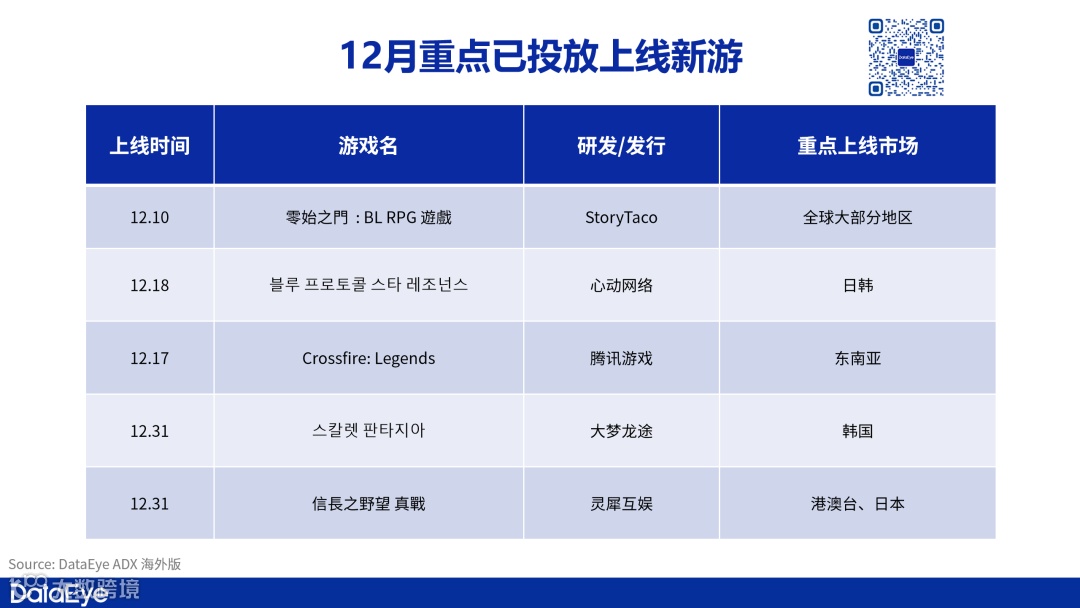 在已经开启广告投放、并预计在12月上线的新游中,值得关注的重点产品有: