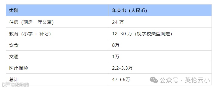 综合来看,一个三口之家在新加坡陪读生活一年的大致花费如下(以人民币计算,汇率约 5.6):