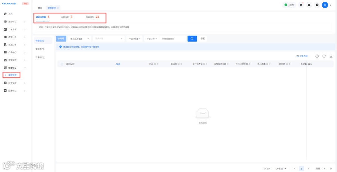 对于东南亚卖家而言,心舰BI的索赔中心可以让卖家告别手动筛选异常订单的烦恼,节省大量时间与精力,有效挽回意外损失,提升净利润。