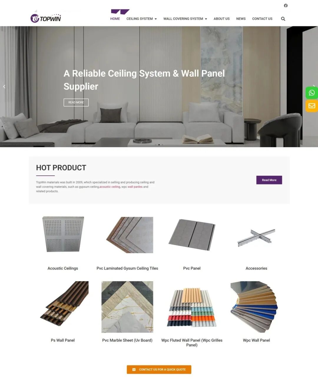 外贸B2B独立站这是我们为一家专注于 吊顶系统与墙面装饰板材 的专业制造及整体解决方案供应商打造的官方网站。网站系统展现了企业在 吸音天花、PVC墙板、覆膜石膏吊顶板、UV大理石板、WPC/PS木塑装饰板 等产品领域的创新实力与全球供应能力,致力于为建筑空间、商业工程与家居装饰项目提供 高品质、美观耐用、环保节能 的综合装饰方案。