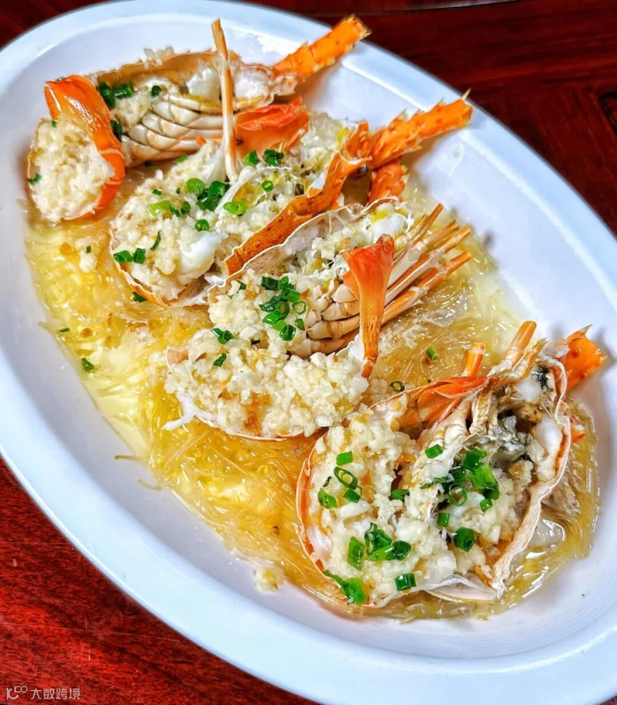 小青龙的虾肉经过蒸制后,保持了鲜嫩。经过热油激发后,被粉丝充分吸收,一口下去吸饱了龙虾的鲜美汤汁和蒜蓉的香气。