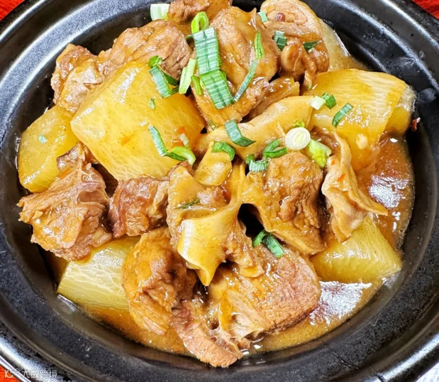 牛肉肥嘟嘟的看着就松软鲜嫩,连皮带筋滑入口中,都不用怎么多嚼,萝卜清甜软烂,吸收了肉香后吃起来土腥味全无。埋头苦吃的同时,还不忘再来2碗米饭!