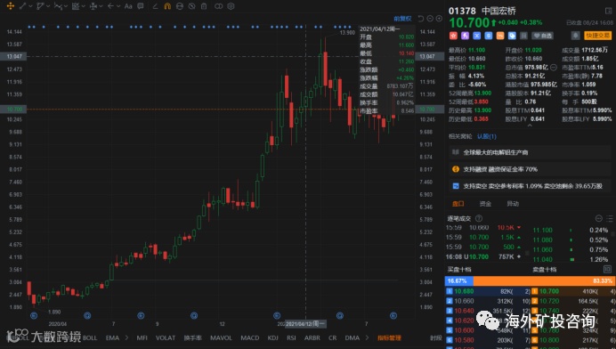 中国宏桥集团有限公司(股票代码:1378)是中国领先的铝产品制造商,总部位于山东,主营液态铝合金、铝合金锭等产品的生产与销售,市值近1000亿港币,具备完整的产业链与成本优势[k]。