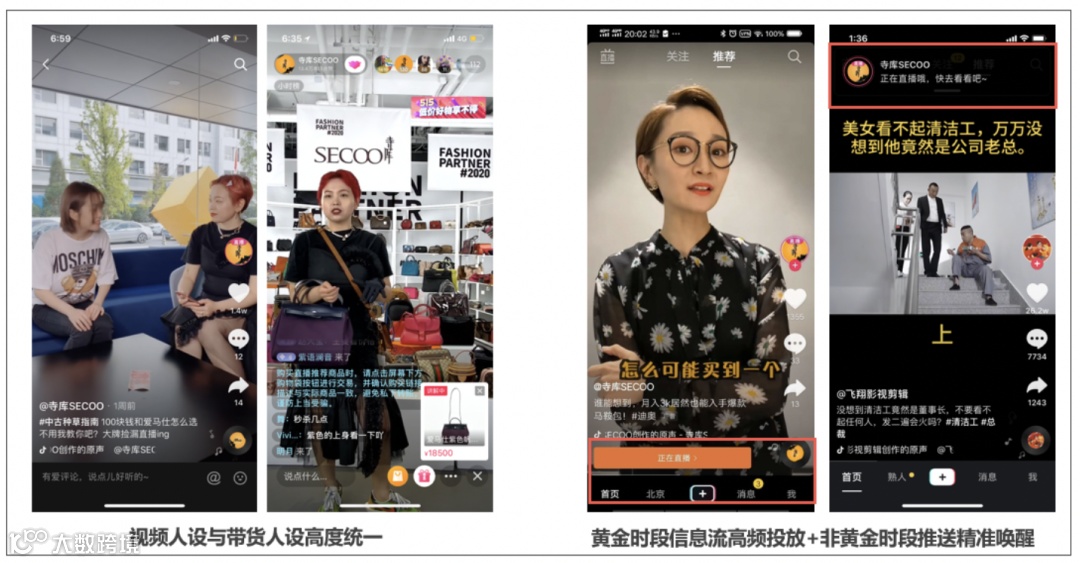 。其投放策略激进,在黄金时段使用信息流广告与DOU+,非黄金时段进行精准推送,有效提升直播间人气
