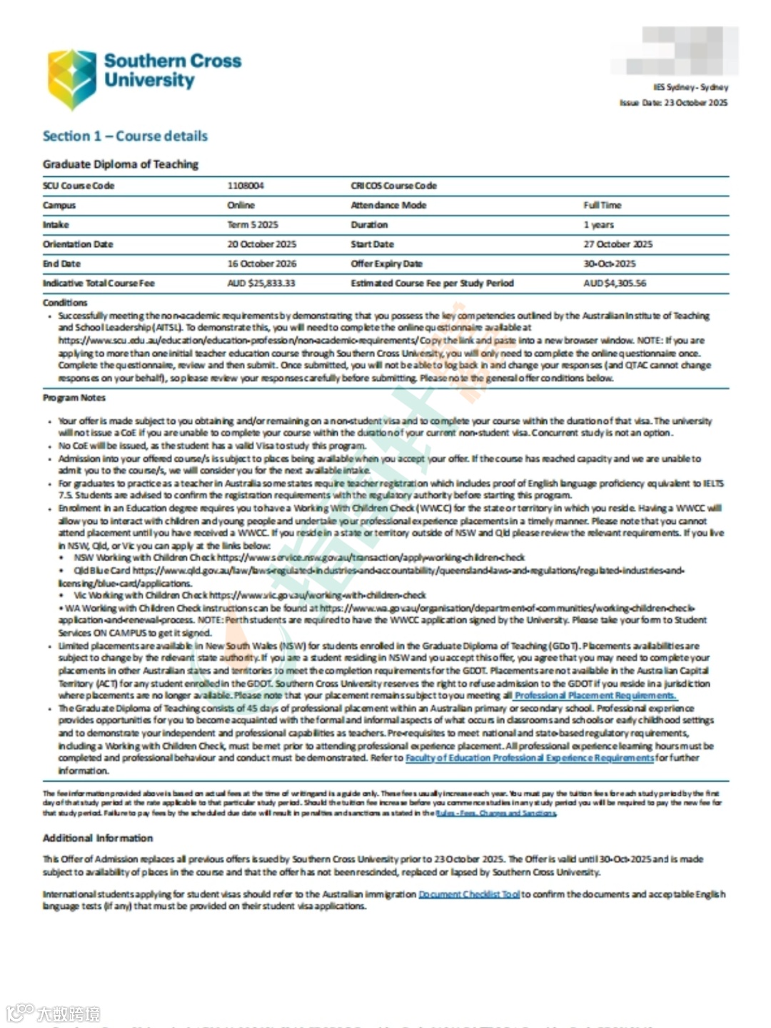 ⚠️ 若选择在悉尼就读中教GD,NSW的实习安排需跨州进行,且实习地点无法提前确定。