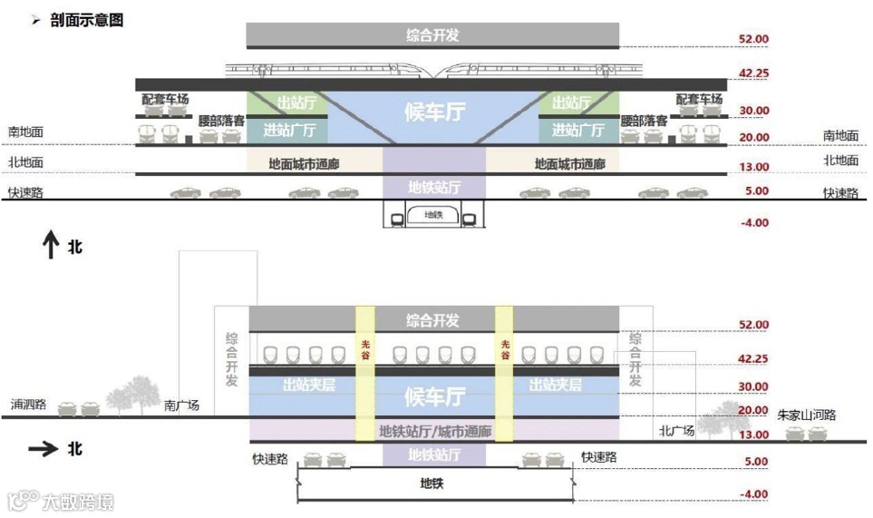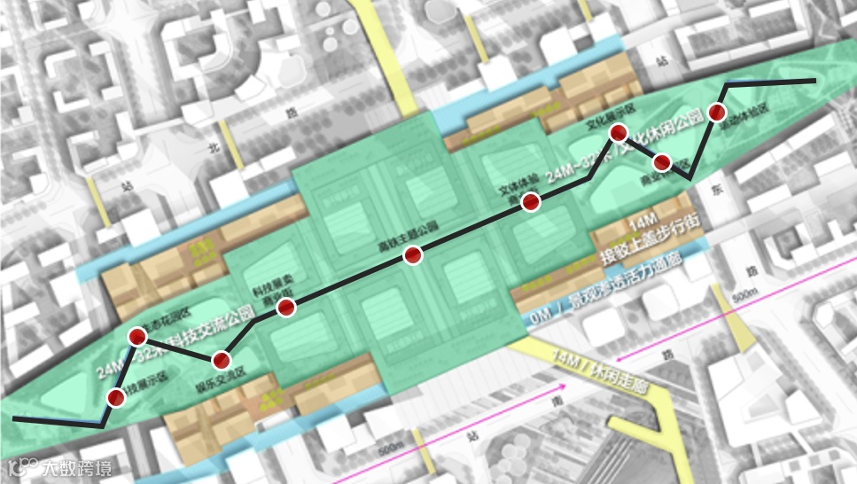 交通枢纽与城市开发一体化,站点与其周边区域一体化设计,模糊高铁站与周边地块的视觉边界