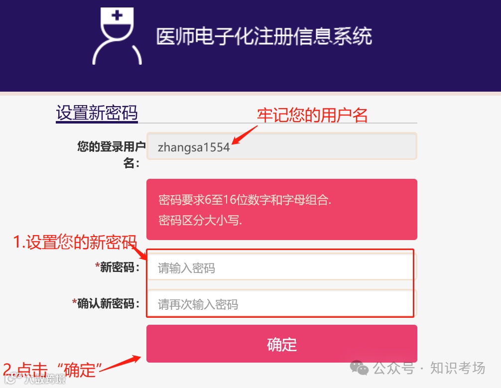 ④在打开的设置新密码界面中,牢记您的登录名,正确设置您的密码,然后点击确定。