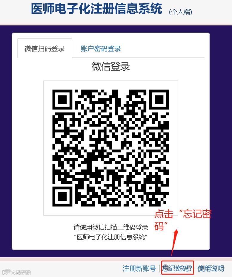①进入医师电子化个人端登录界面https://cndocsys.cn/home/index,点击“忘记密码”。