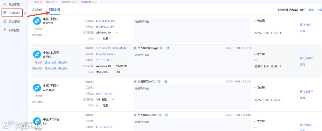 这类功能在 WordPress 需要装很多插件,但在 AB客智能建站是内置的(访客轨迹、行为记录、询盘分析等),对外贸新人非常友好,也更适合做持续优化。