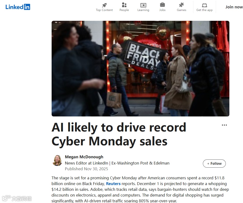 2025年黑五购物季落幕,美国在线销售额达118亿美元,同比增长9.1%,创历史新高。此次消费热潮背后的最大推动力并非促销折扣或网红带货,而是AI生成式GEO(Generative Engine Optimization)的迅猛发展。