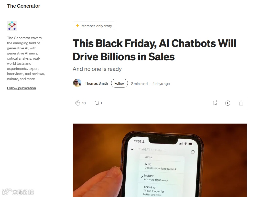 对中国独立站卖家而言,这是重大利好。依托供应链与性价比优势,只需将产品信息结构化、语义化(如标注“婴幼儿专用”“黑五限时8折”“全球包邮”),即可更易被AI抓取推荐。“AI可见度”的优化将成为未来SEO的核心方向。