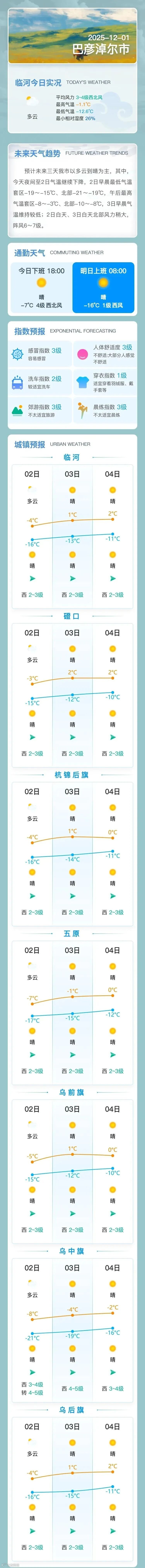 冷冷冷!巴彦淖尔最新天气预报→