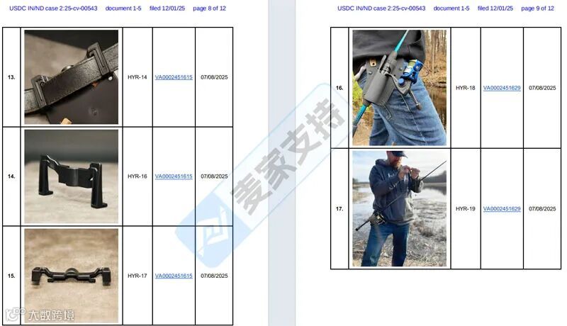 本案是Flener律所代理Pine 9 Solutions LLC在印第安纳北部地区发起的维权,主要针对其未经授权使用其在美国注册的Pine 9图形商标,以及钓鱼竿套及其配件的产品图的侵权行为发起。目前该案件处于前期立案阶段,暂未获批TRO临时限制令,跨境卖家需尽快排查并下架高危产品,避免账户陷入TRO被动状态!