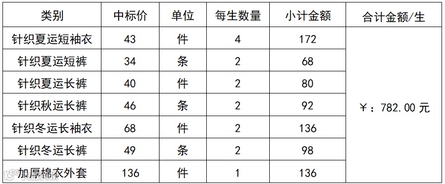 (一)、校服数量及价格: