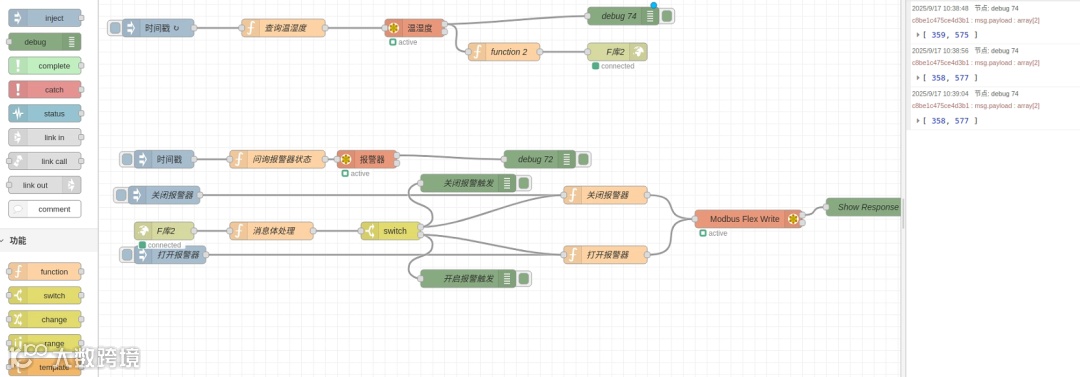 节点开销:每个 Node-RED 节点(尤其是第三方节点)都包含额外的逻辑封装(如输入校验、日志打印),多节点串联时,单次数据流转会产生 5-10 次函数调用,累积开销显著。