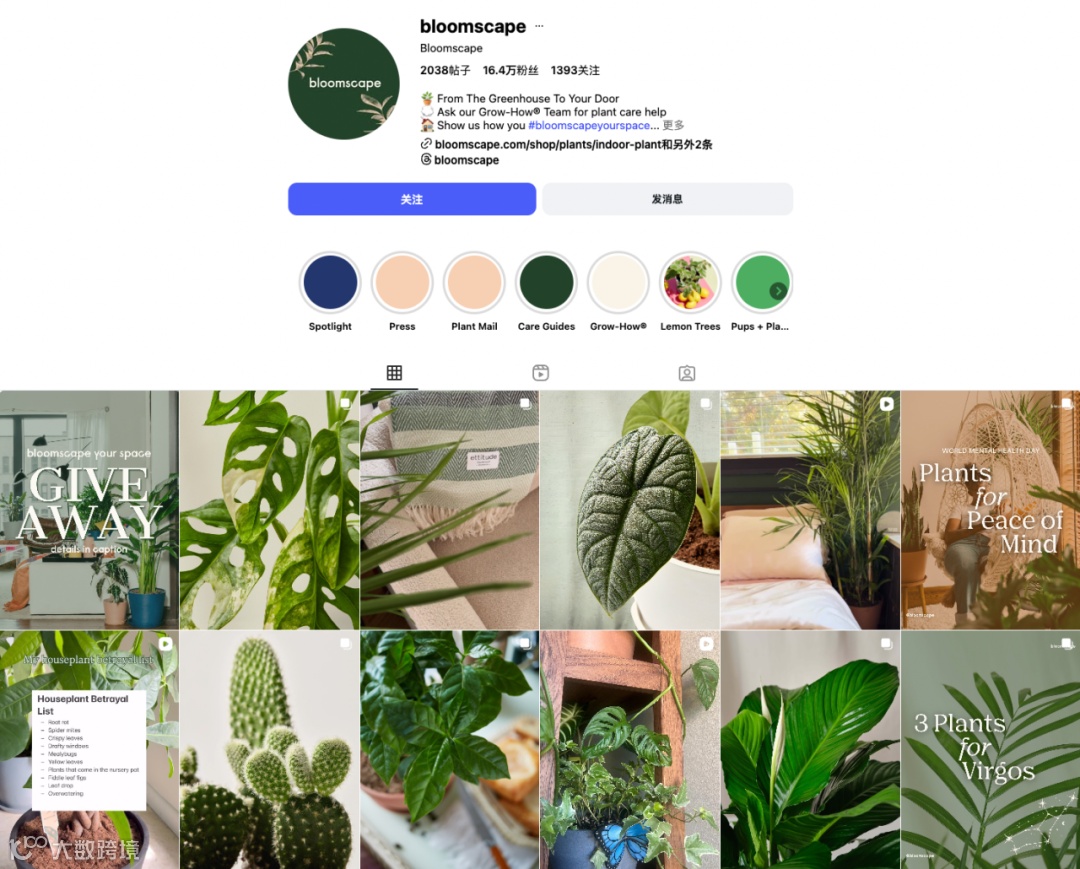 用户在 IG Story 或 Reels 中发布“我的 Bloomscape 植物刚到家,包装比我想象中还稳”时,品牌的配送及包装优势自然被用户放大。Bloomscape 通过这类礼包活动,把“送礼”“家居审美”“植物养护”三重价值捆绑在一起。
