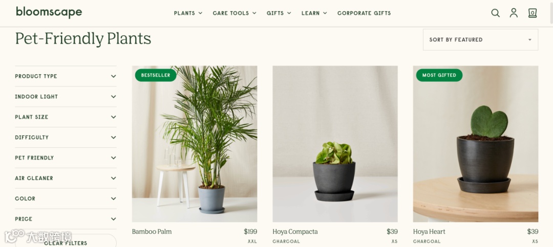 Bloomscape 把这类植物做成高度模块化的产品,并打上了“低光环境也能存活”、“宠物友好”等标签,在电商渠道中极具转化力。比起强调专业知识,它更强调“方便、快捷好打理”,这与年轻消费者的需求高度匹配。