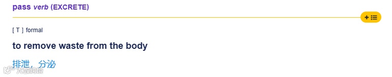 “pass”有排泄之意,与“water”组合表示“排尿”,属较正式或医学用语[k]。