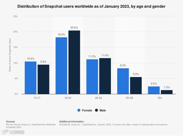 在20多个国家/地区,Snapchat覆盖了90%的13-24岁人口