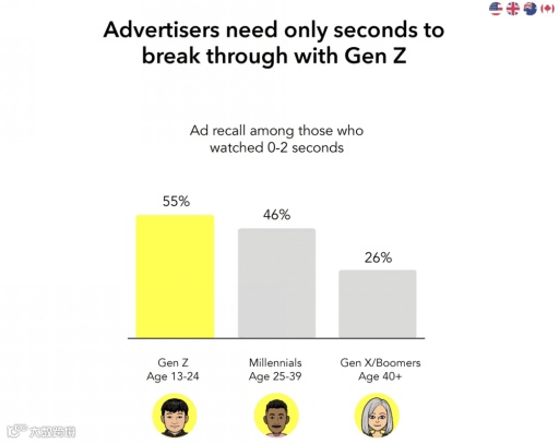 55%的Z世代在观看0到2秒的广告后会回忆起广告