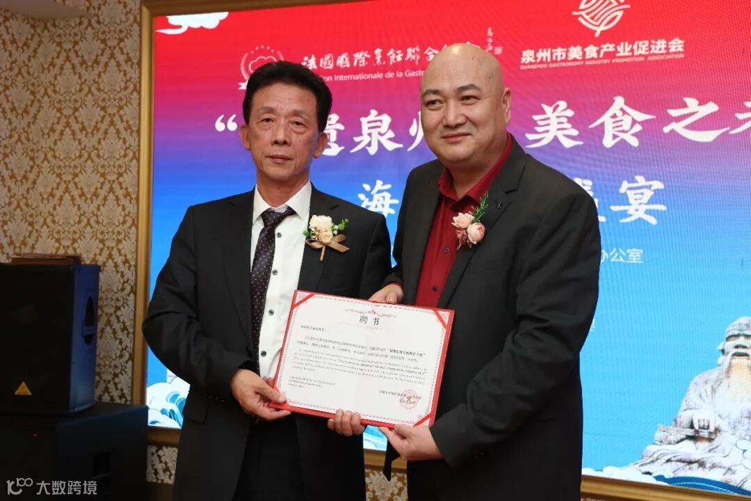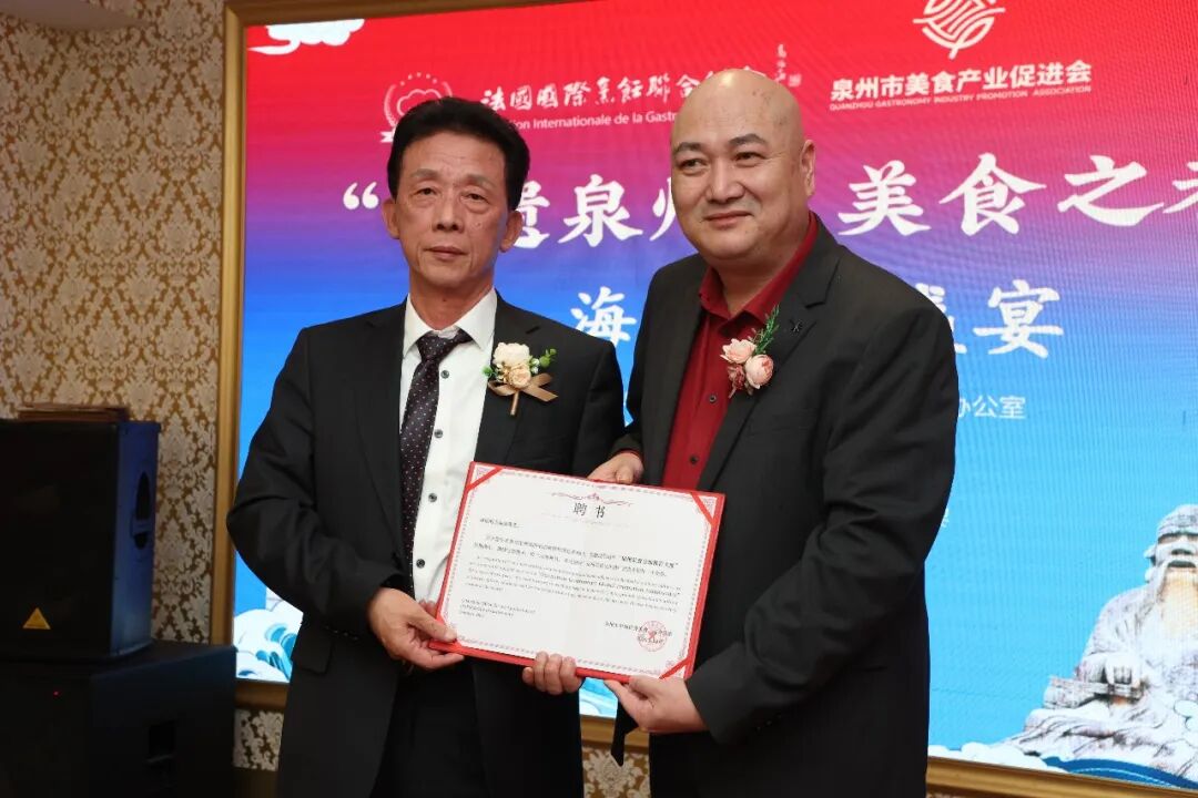 活动期间,陈日星还向王加清和陈建斌颁发了“泉州美食全球推荐大使”证书,王加清与陈建斌也向以陈建斌为团长的中国团队赠送了礼物,陈建斌与陈日星还分别代表法国国际烹饪联合总会和泉州市美食产业促进会签署了合作协议。此外,AFC法中跨国文化交流协会会长蔡景瑞与协会成员,还向陈建斌赠送了礼物。现场还进行了宴会主理荣誉证书颁发等活动。