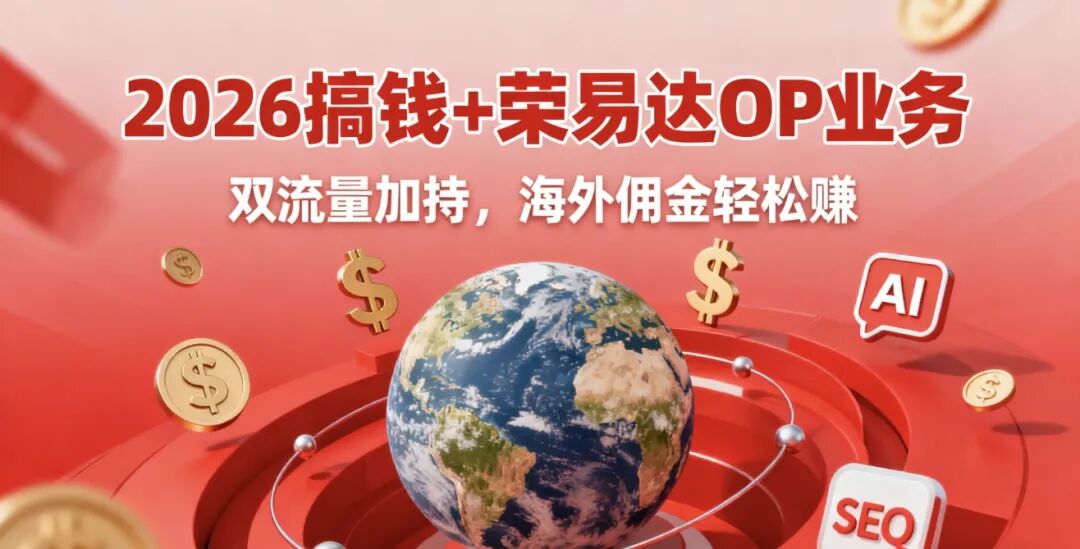 2026年的搞钱机会,藏在“跨境+AI+联盟+SEO”的红利叠加里。荣易达OP业务,用优质资源、专业教学、专属工具、全方位服务,帮你打通“双流量引流-私域变现”全链路,让普通人也能轻松分食海外广告联盟的大蛋糕。