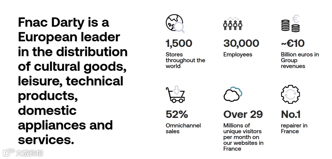 Fnac Darty为欧洲文化商品、休闲、技术产品、家用电器及服务分销领域的领导者,在法国为主要运营市场,并位列全法第二大电商平台。