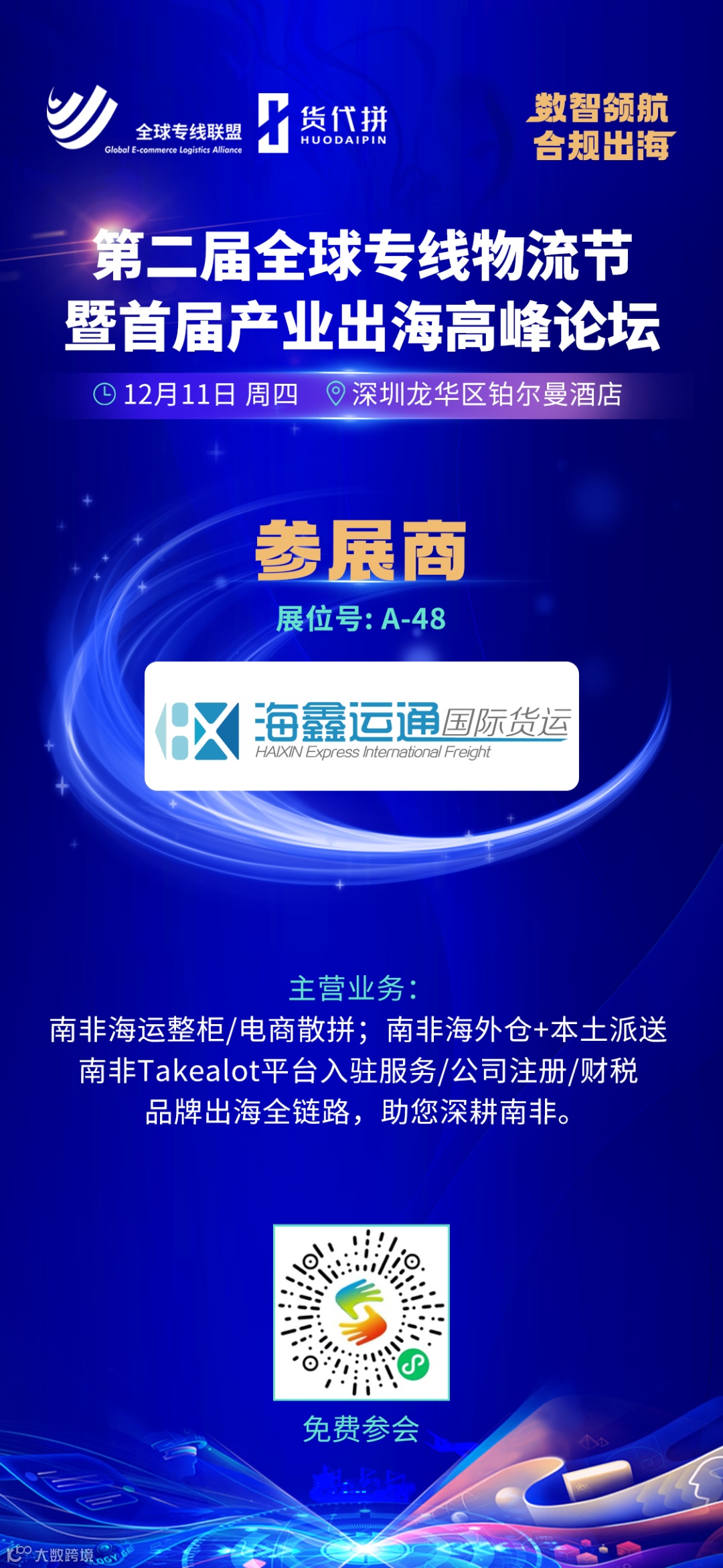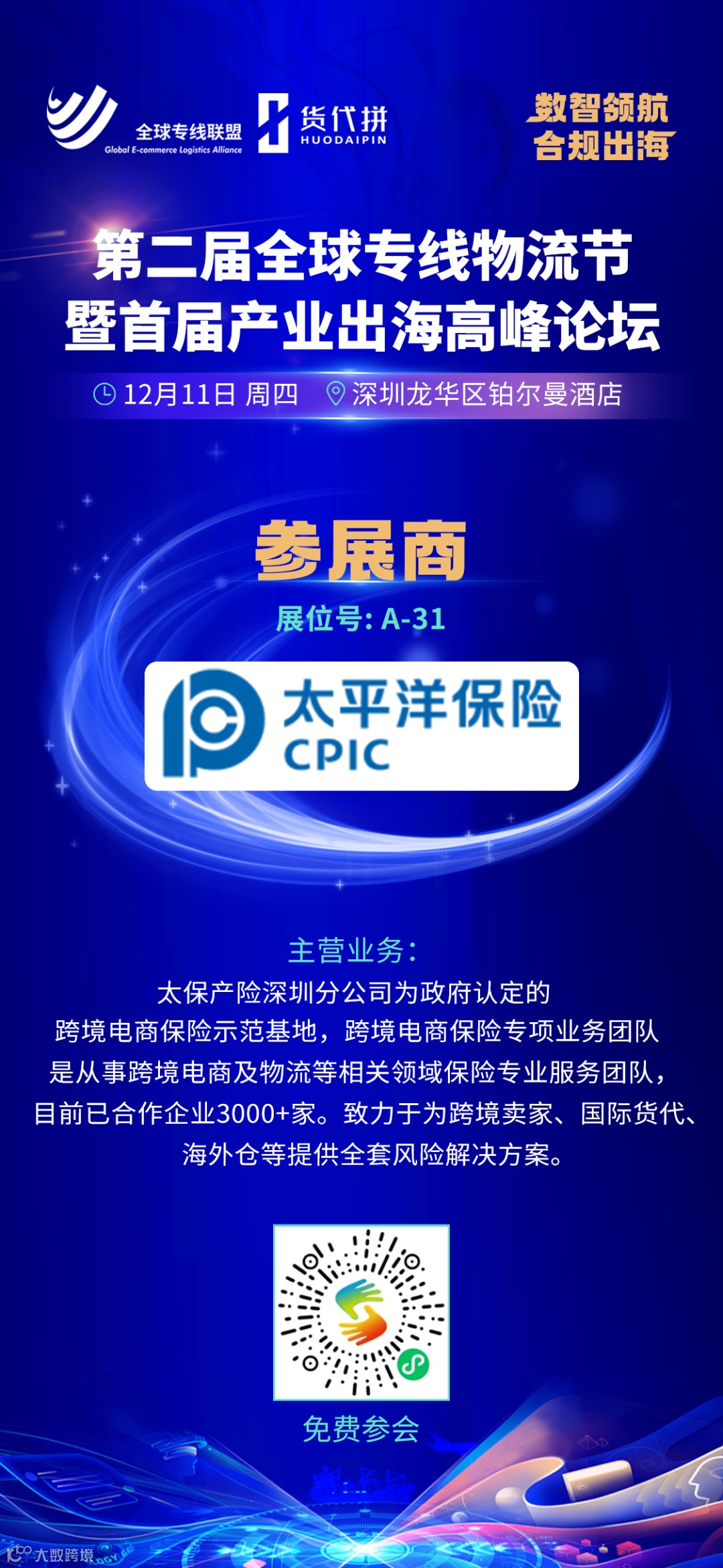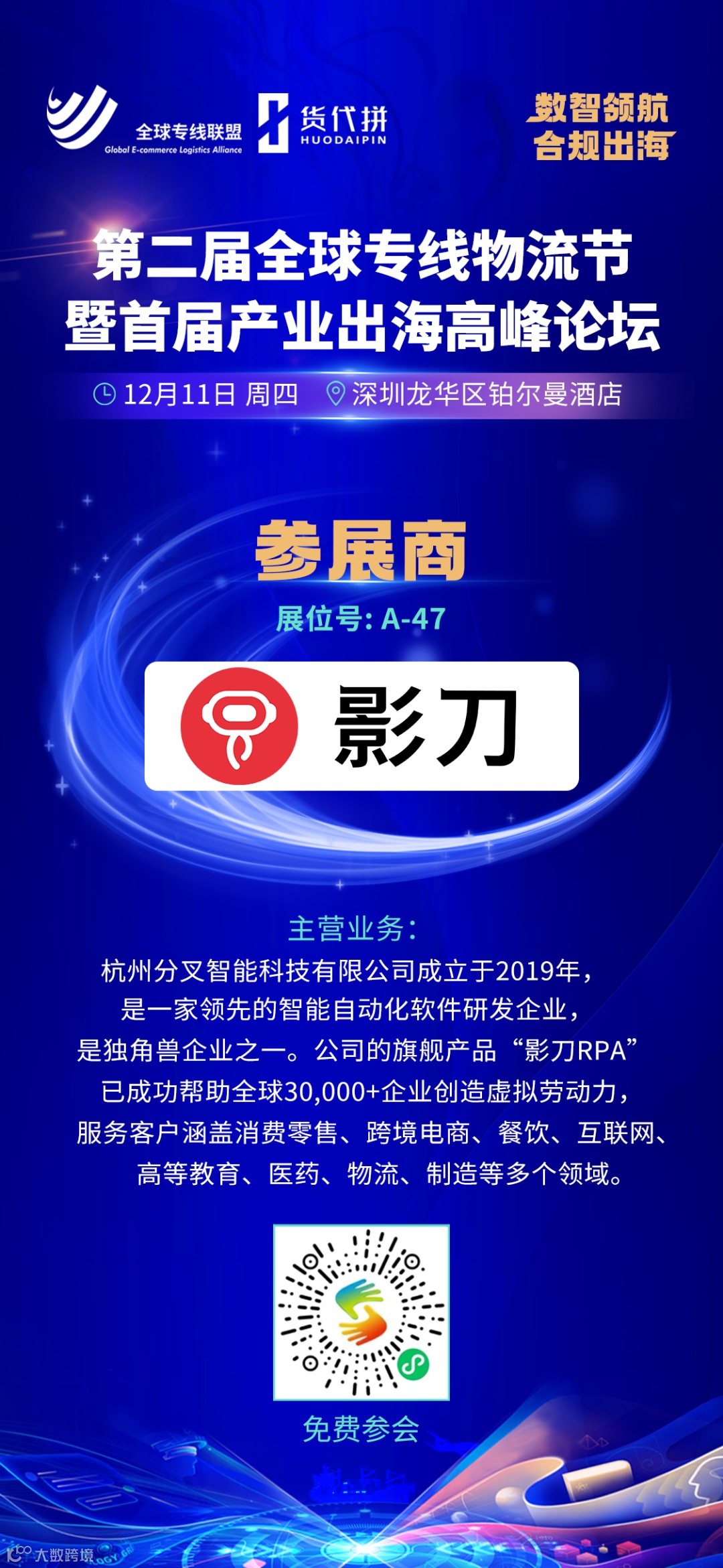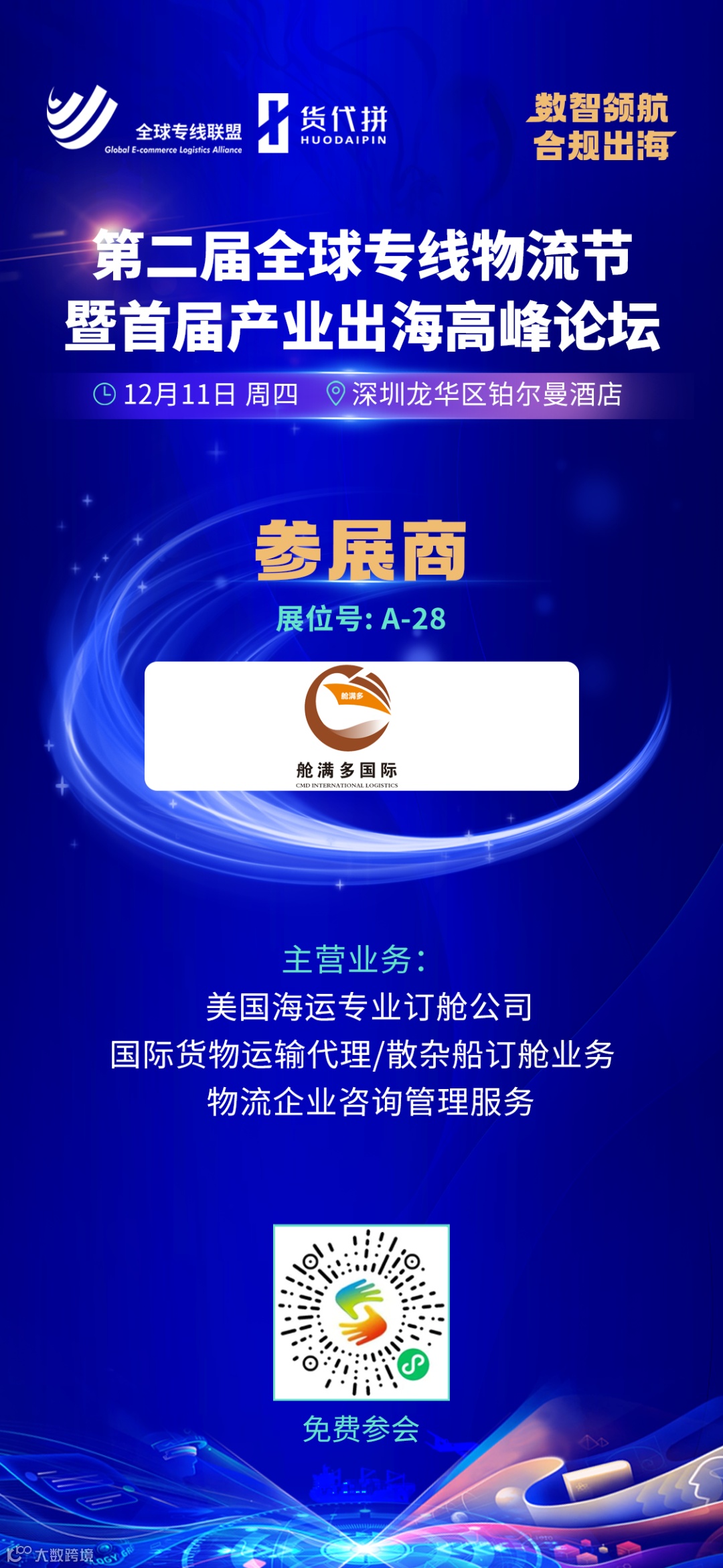 影刀、舱满多、鸿顺捷、海鑫运通、出海网、太平洋保险等多家行业标杆企业已确认参展,将集中展示跨境物流领域的核心技术、服务能力和创新成果。