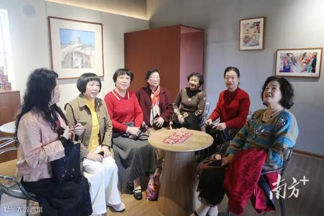 “阿姨团”在休闲区歇脚。