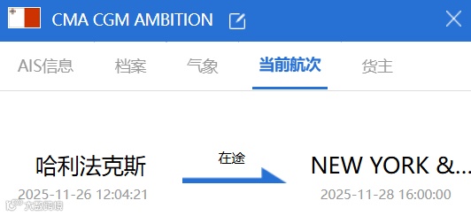 PSA哈利法克斯日前宣布,由达飞轮船、中远海运、东方海外和海洋网联船务(ONE)联合运营的AMERIGO新航线正式启用。首航船舶——达飞轮船LNG动力集装箱船“AMBITION”号已于2025年11月25日靠泊PSA哈利法克斯大西洋枢纽码头。