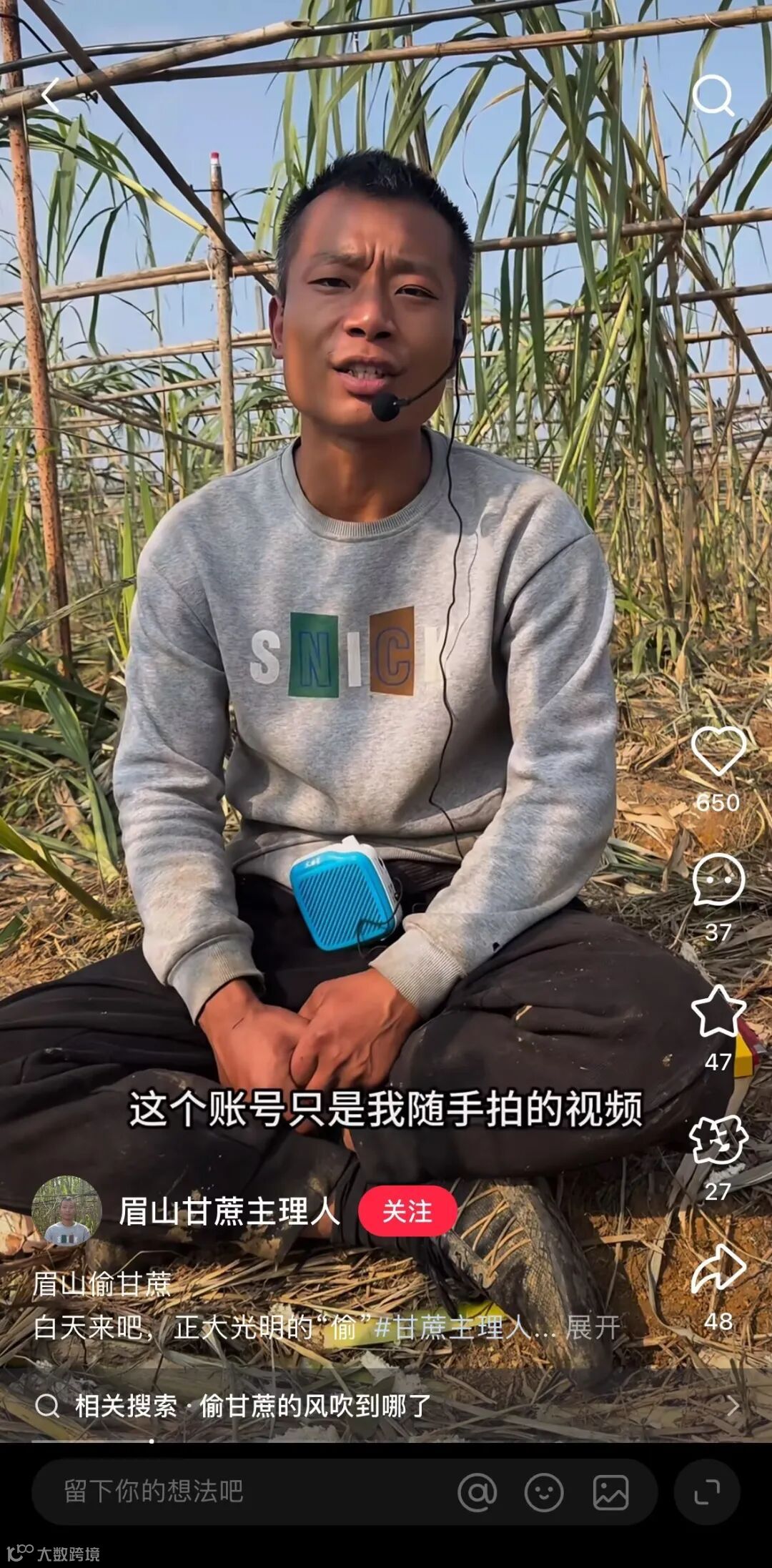 活动由当地一位农场主发起,他在小红书发布视频称:“外省的甘蔗很火,其实四川眉山也有。这里24小时营业,9.9元一根,砍刀已备好。”。