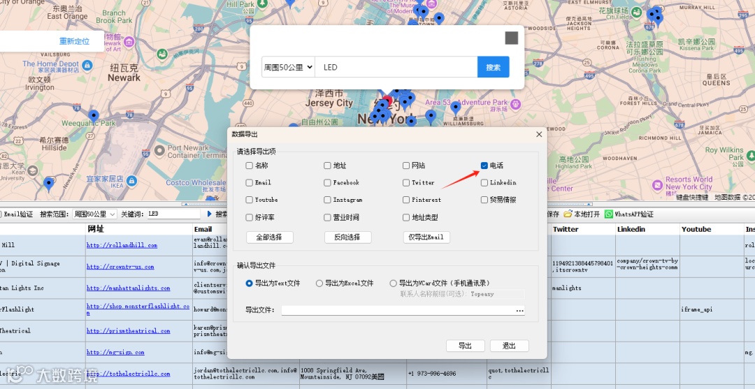 获取电话号码后,可导出纯号码文本,用于后续 WhatsApp 账号验证。
