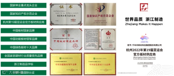公司深耕产品研发,率先推出杉木芯细木工板、生态木工板、生态多层板等系列产品,并顺应市场需求开发抗菌、防虫、难燃、石墨烯等功能性板材。主导或参与制定多项国际、国家、行业及“浙江制造”标准,拥有多项授权专利。2023年,成为杭州第19届亚运会官方板材供应商。