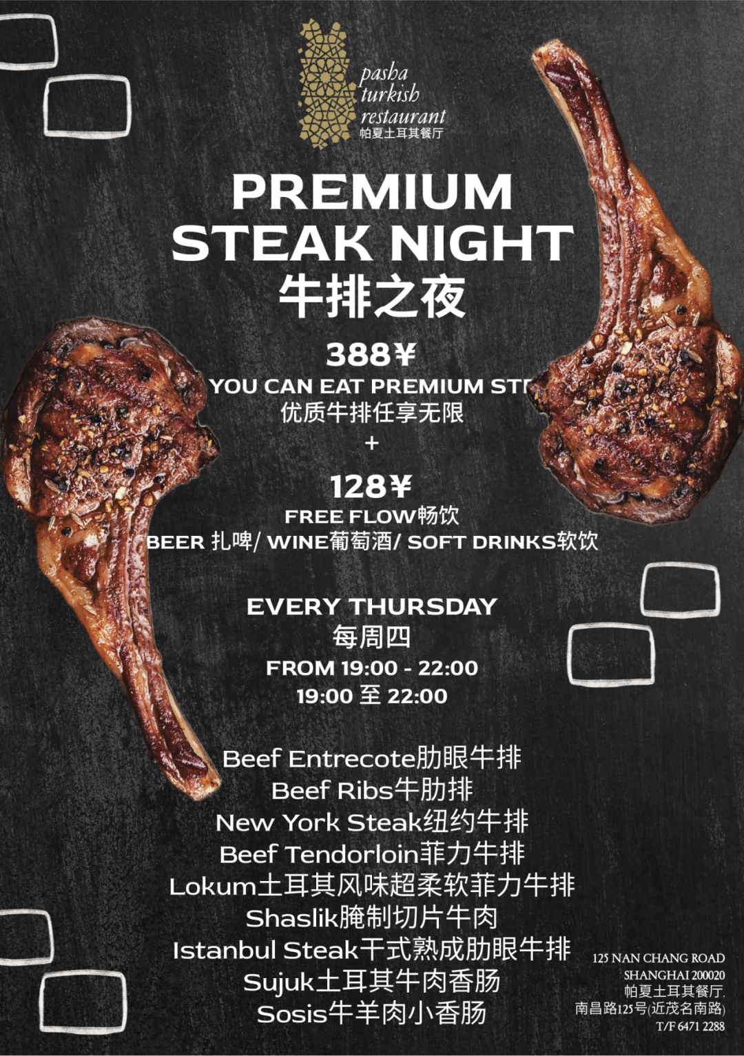 Thursday: Premium Steak Night (6:30 PM–9:30 PM)