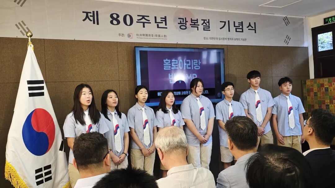 항저우 장성로에 위치한 대한민국 임시정부 항저우 옛 청사 기념관에서 제80회 광복절 기념식이 열렸다. 태극기 무늬 넥타이를 맨 청소년들이 조용히 서서 노래했고 그 노랫소리는 벽돌담 사이로 울려퍼졌다. 그들은 역사적 현장의 목격자는 아니지만, 자신만의 방식으로 기억과 마주했다.
