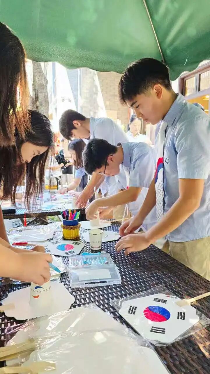 그들은 항저우 국제학교의 한국 학생들이었다—과제가 아니라 스스로 신청한 참여였다. 손수 그린 손부채, 화음, 그리고 청춘의 힘을 담아냈다.